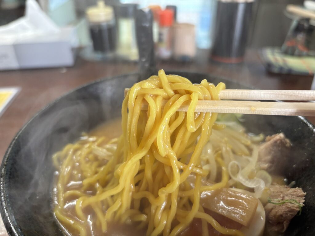 西山製麺ならではの弾力と風味が、スープの旨みをしっかり受け止め、最後の一口まで飽きさせません。