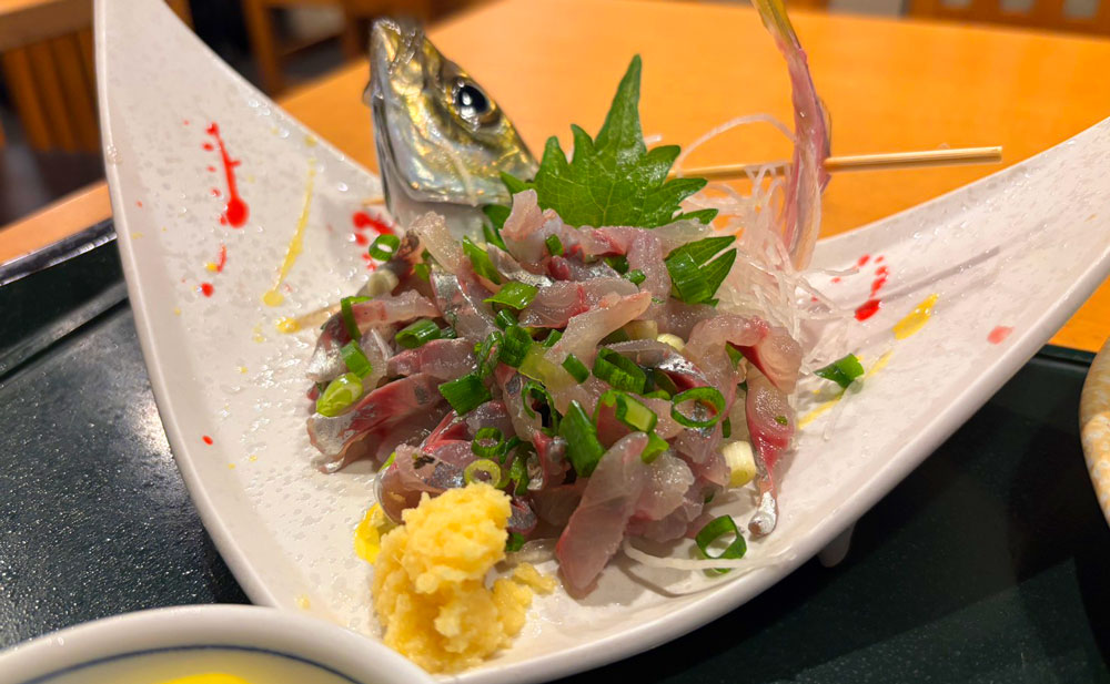 • アジのたたき(なんと注文を受けてから水槽から〆た新鮮そのもの)、