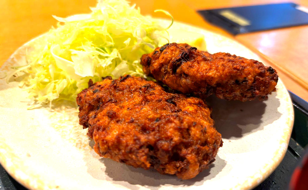 次にイカメンチを一口。外はカリッと香ばしく、中はイカの旨味がぎゅっと詰まって、野菜のシャキシャキとした食感も心地いい。