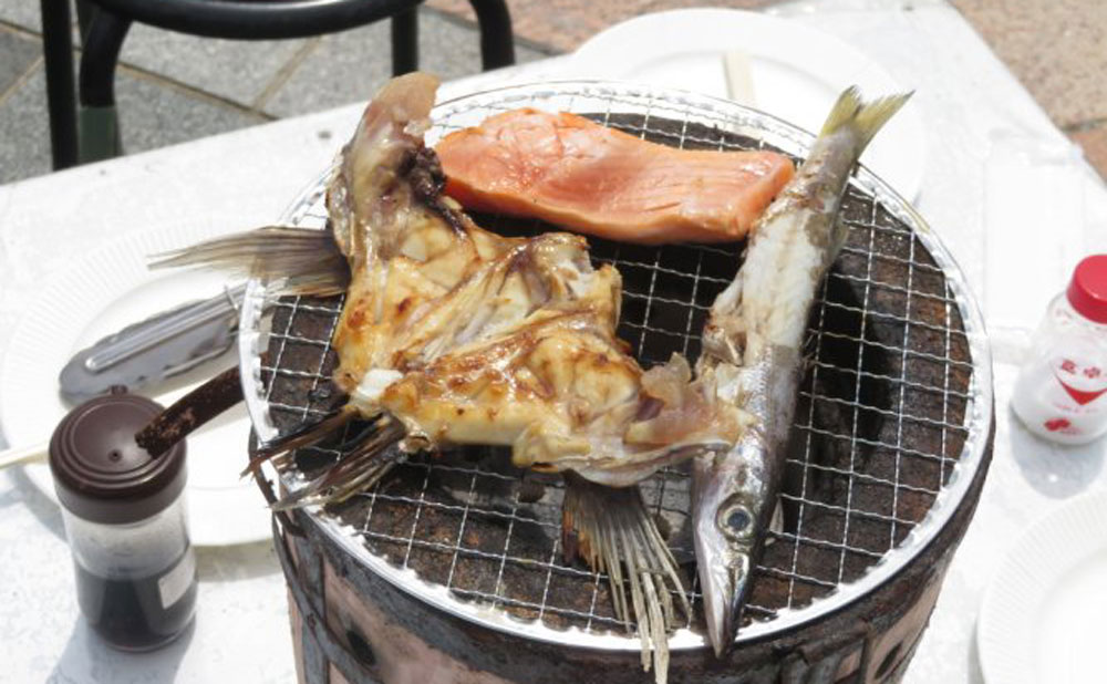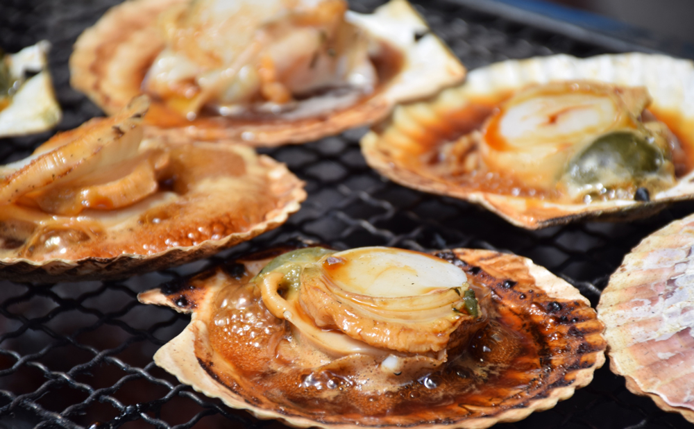 浜焼きはその場で焼いて食べられるスタイルで、潮風を感じながら新鮮な魚介を堪能できます。